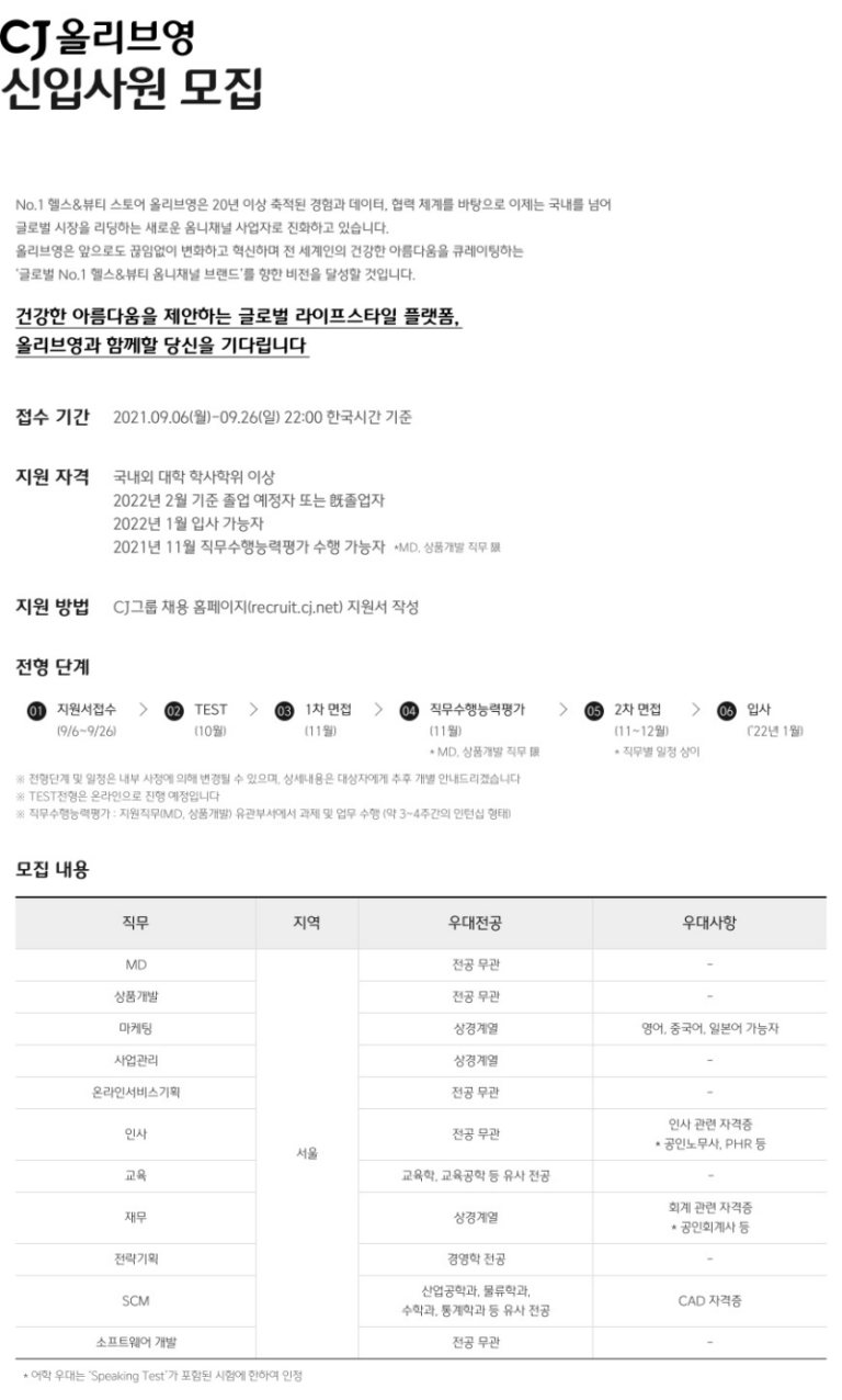 CJ올리브영 채용공고, 자기소개서 쓰는법