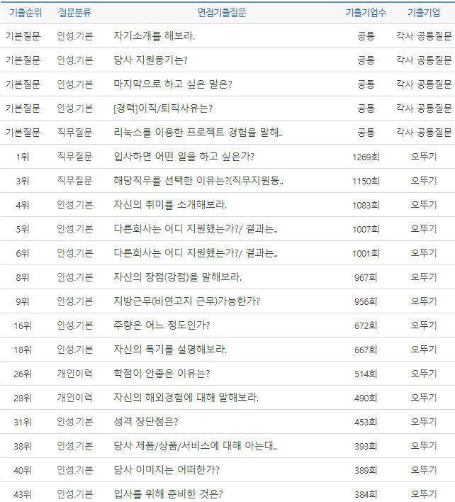 면접질문 채용공고, 자소서 문항 분석, 합격후기