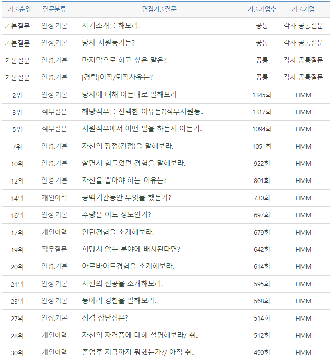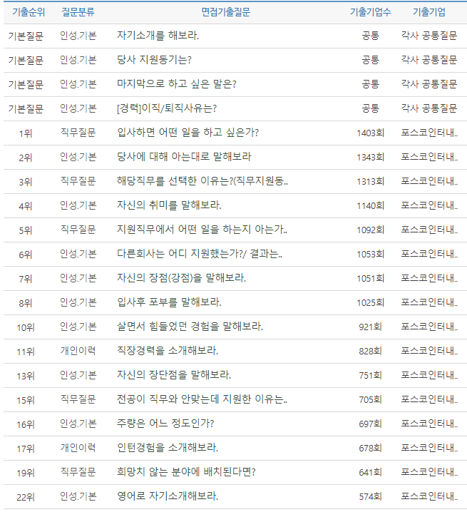 면접 채용 정보, 자기소개서 문항 분석, 자소서 합격 후기