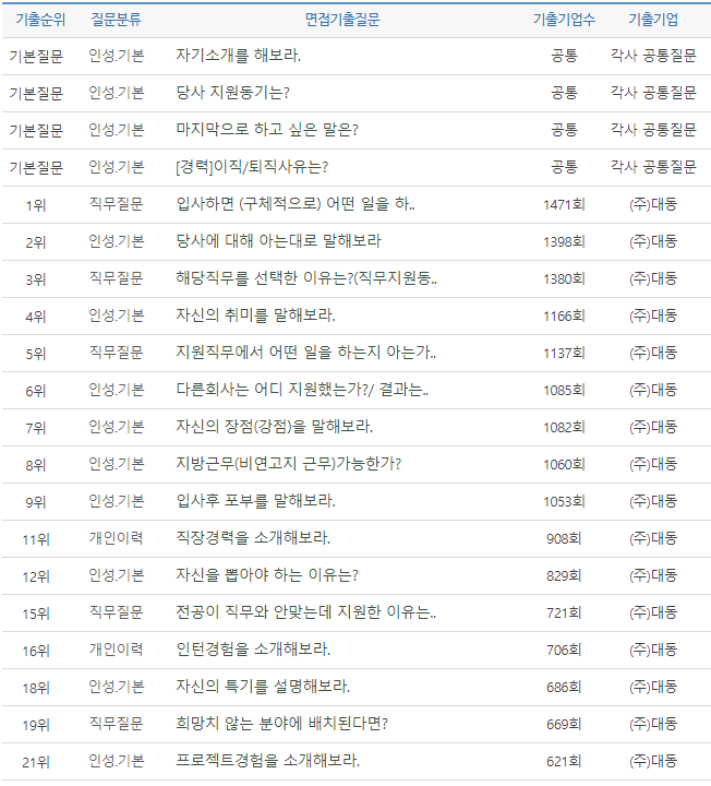 대동 채용 정보, 자소서첨삭