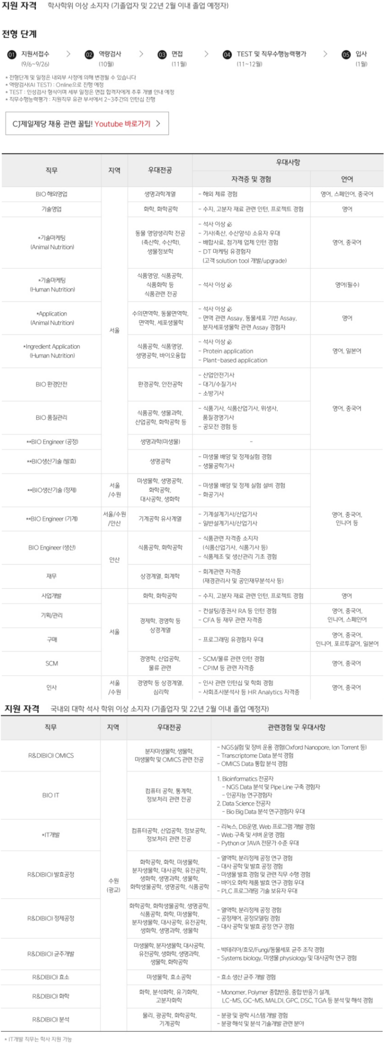 CJ제일제당 채용, 자소서 문항 분석 및 작성법